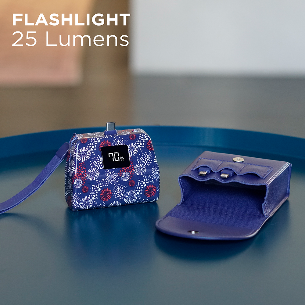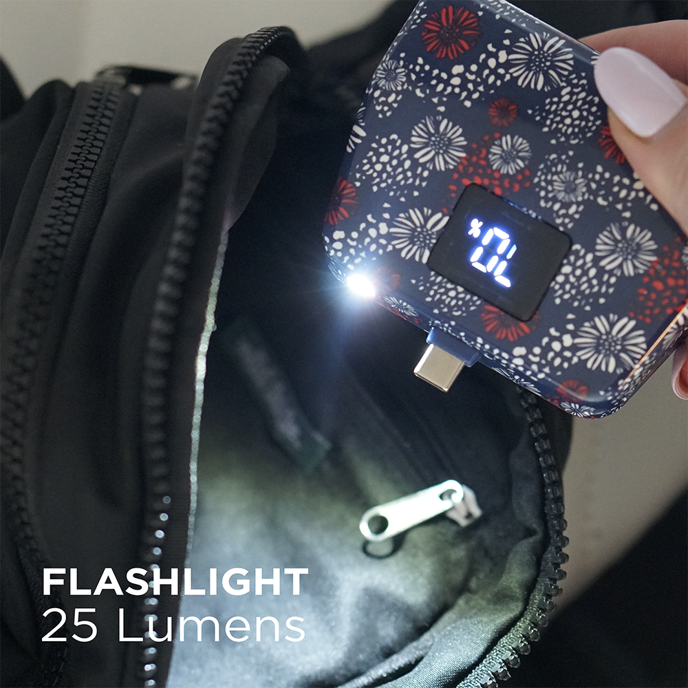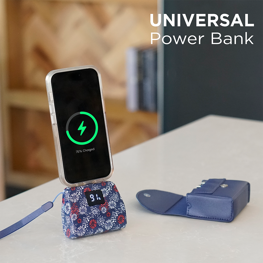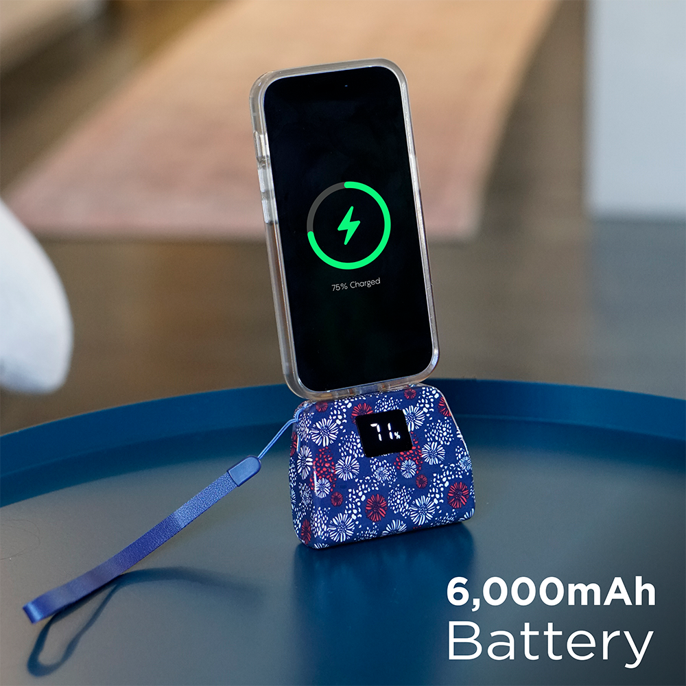 Say goodbye to tangled cords and bulky chargers—with the TotalBoost Mini Pro II, everything you need is built right in. This sleek, ultra-portable power bank keeps you powered up anywhere, anytime—no extra cables required. Equipped with built-in interchangeable charging adapters (Type-C, Lightning, and Micro-USB), the TotalBoost Mini Pro II delivers complete compatibility for virtually any mobile device. The powerful 6,000mAh rechargeable battery provides multiple charges for your phone, earbuds, or other devices, while its cable-free design lets you move freely and charge with ease. Featuring a digital battery display, kickstand with magnetic closure, and mini flashlight, this compact powerhouse combines functionality, portability, and convenience in one smart design. Slip it into your pocket, purse, or travel bag—and stay connected wherever life takes you.