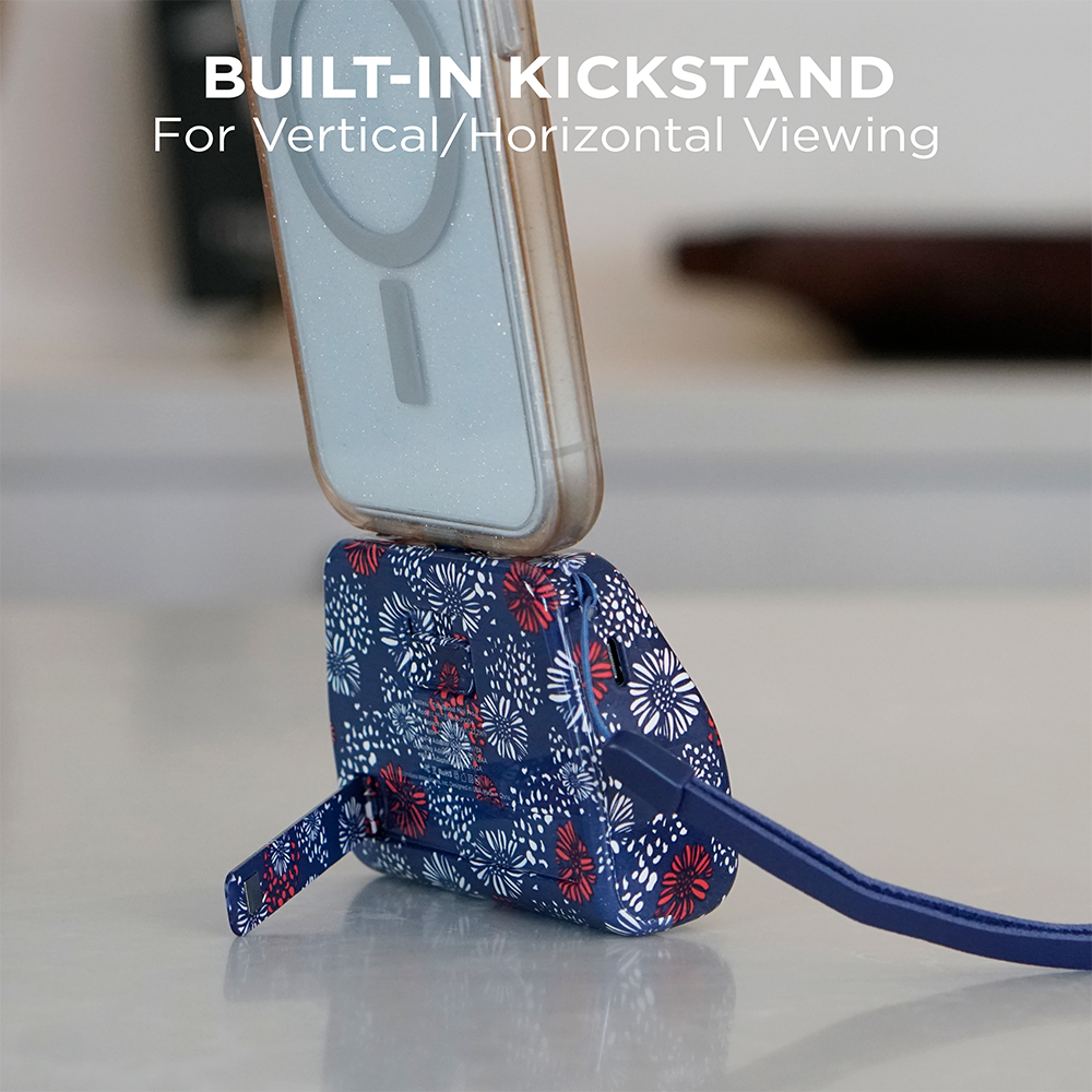 • Built-in kickstand for convenient charging on the go