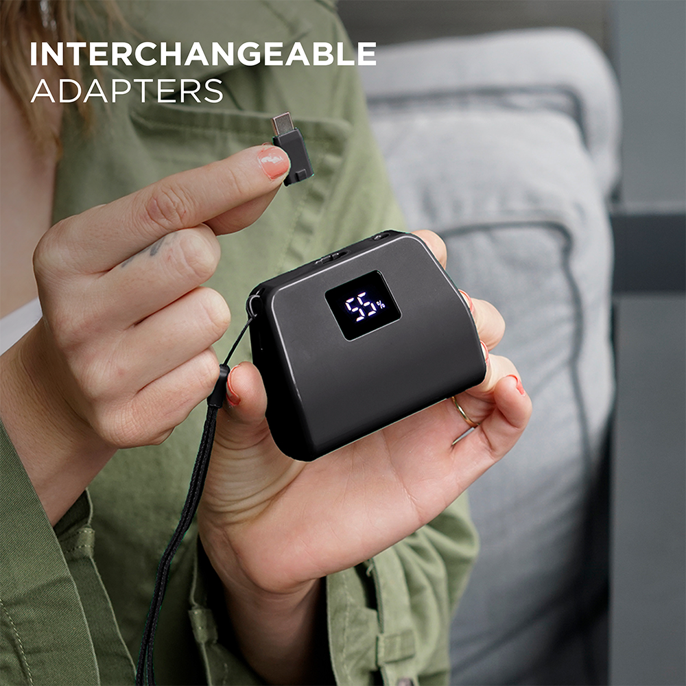 TotalBoost Mini Pro II Power Bank with Interchangeable Adapters & Case - Metallic Black
