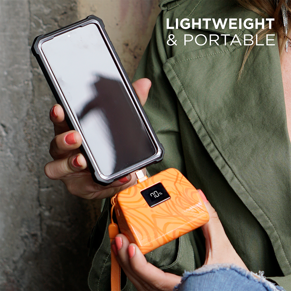 Say goodbye to tangled cords and bulky chargers—with the TotalBoost Mini Pro II, everything you need is built right in. This sleek, ultra-portable power bank keeps you powered up anywhere, anytime—no extra cables required. Equipped with built-in interchangeable charging adapters (Type-C, Lightning, and Micro-USB), the TotalBoost Mini Pro II delivers complete compatibility for virtually any mobile device. The powerful 6,000mAh rechargeable battery provides multiple charges for your phone, earbuds, or other devices, while its cable-free design lets you move freely and charge with ease. Featuring a digital battery display, kickstand with magnetic closure, and mini flashlight, this compact powerhouse combines functionality, portability, and convenience in one smart design. Slip it into your pocket, purse, or travel bag—and stay connected wherever life takes you.
